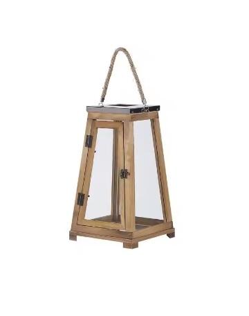 Linterna con marco de madera tallada a mano de color personalizado con linterna colgante con mango superior de metal diseñado