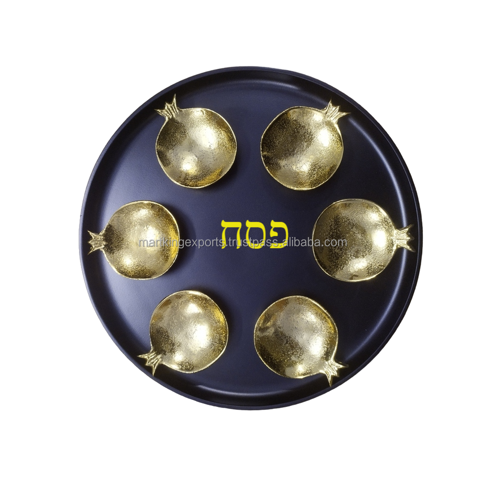 Placa de Metal Judaica de Color personalizado, plato redondo de hojas de oro negro, tazones de pesca judía, Matzah, plato barato