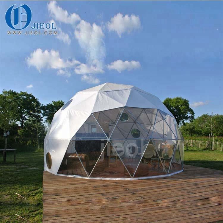 Color y tamaños personalizados 6 7m cúpula de camping tienda geodésica Casa de tienda redonda cubierta de PVC con puerta de vidrio resistencia UV para Resort
