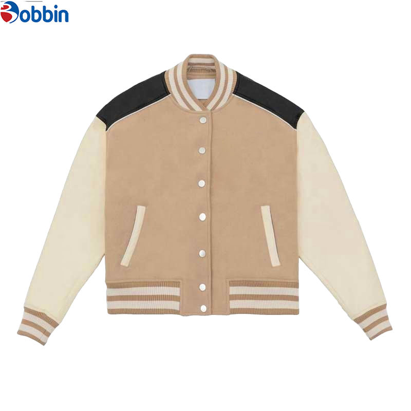 Chaqueta Bomber Vintage Colorblock para Mujer, con Logotipo Bordado en Colores Personalizados, Chaqueta Universitaria Informal de Manga Larga con Botones para Invierno