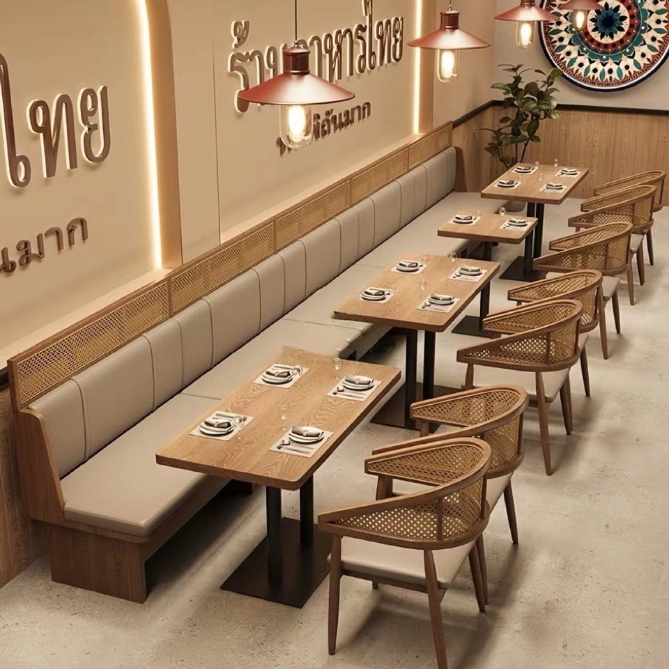 Muebles de restaurante comerciales personalizados, juegos de mesas y sillas, cabinas de cuero, sofás y sillas de ratán, tiendas de café y cocina
