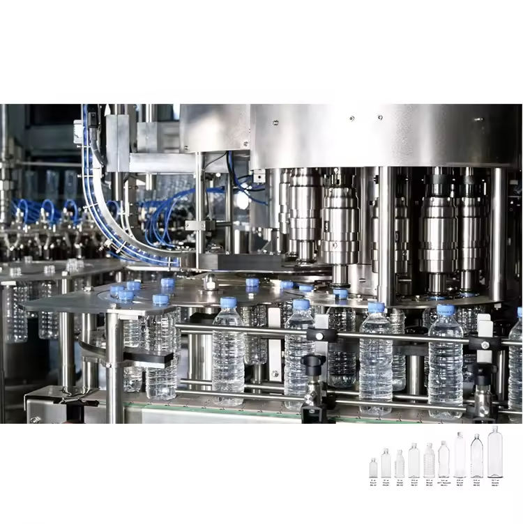 Línea de producción completa de embotellado de mascotas personalizada, fabricante automático de máquinas de llenado de agua 3 en 1 mineral puro