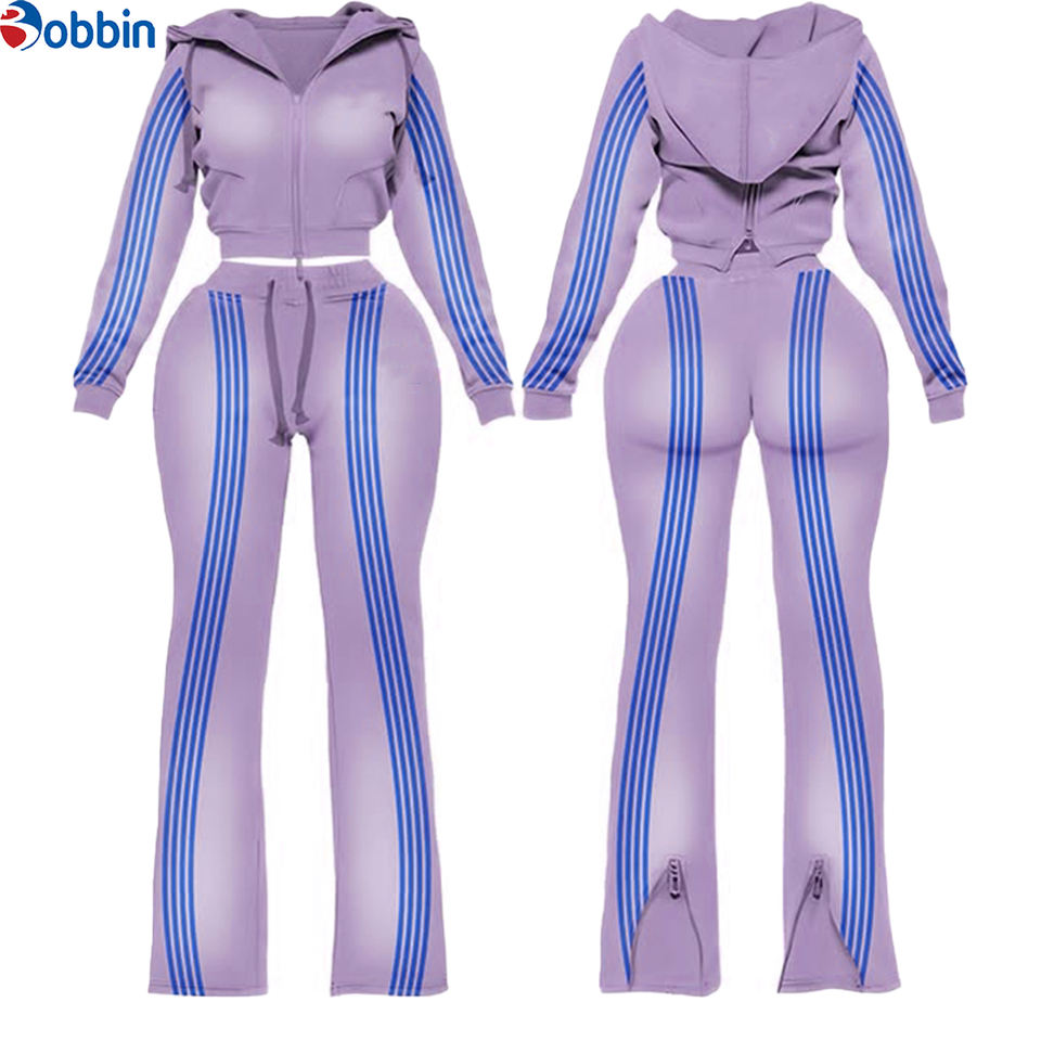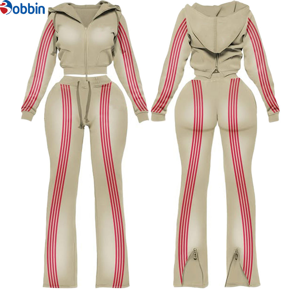 Conjunto Deportivo Personalizado para Mujer, Sudadera con Cierre y Franja Lateral en Contraste, Pantalones Deportivos Acampanados, 2 Piezas, Ropa Deportiva, Estilo Urbano