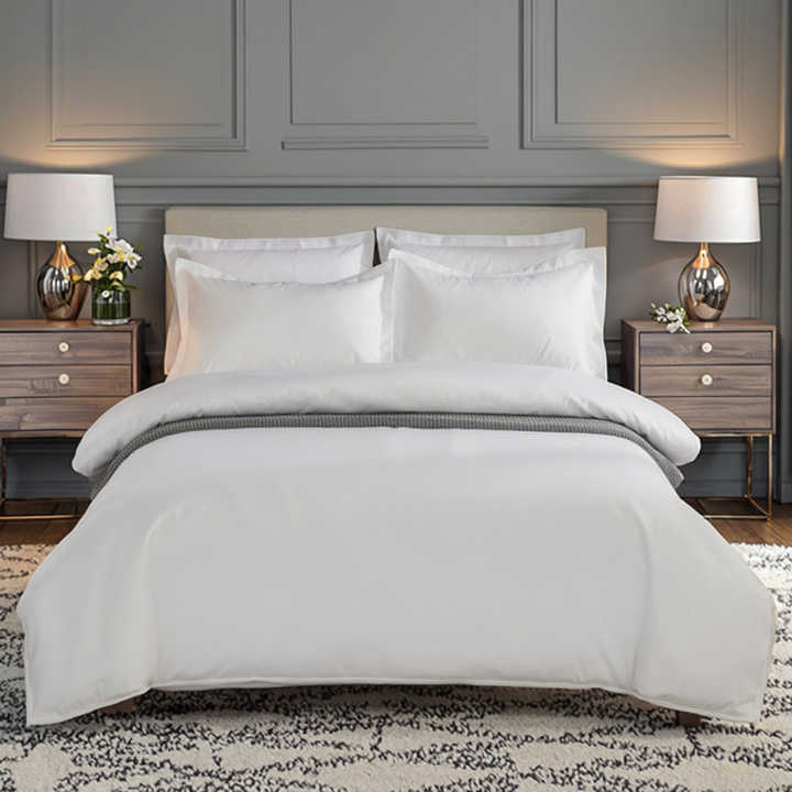 Juego de Ropa de Cama King Size de Algodón/Poliéster Personalizado, Calidad de Hotel, Suave, Blanco, Juego de Sábanas de Diseño para Hoteles