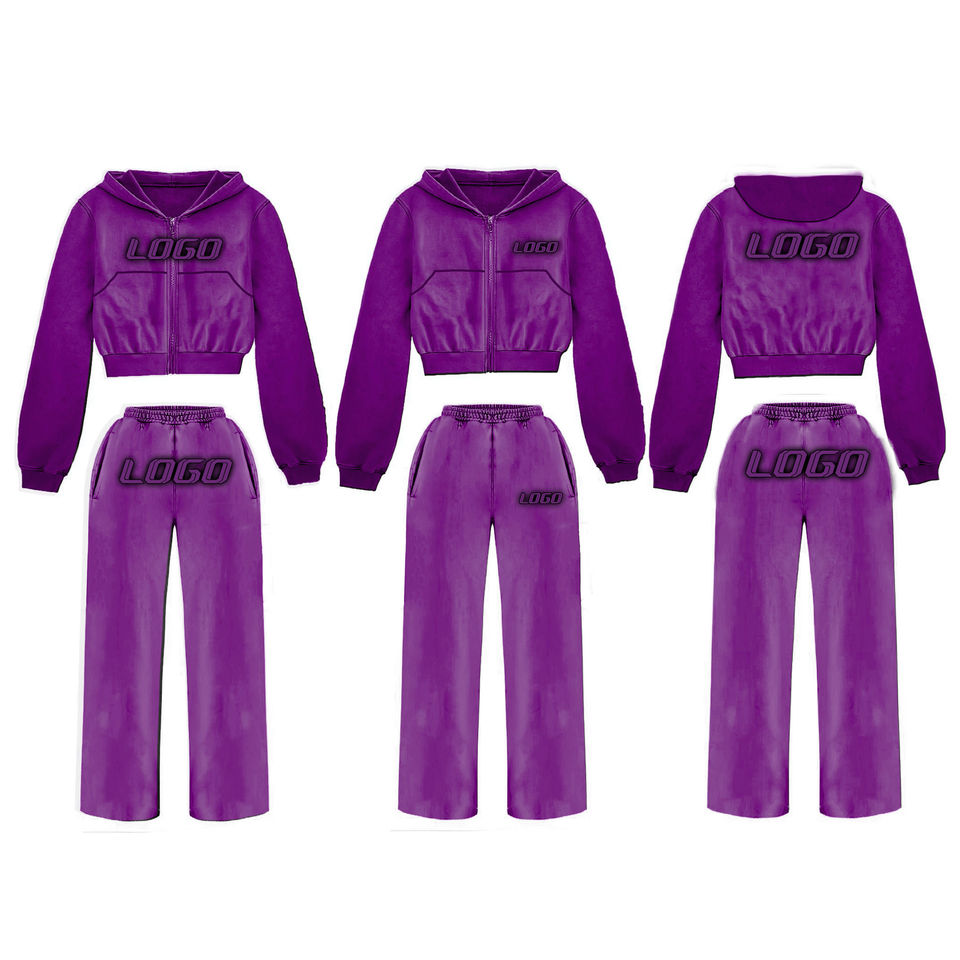 100% algodón personalizado de dos piezas pantalones de chándal acampanados Sudadera con capucha calle sólida chándal de gran tamaño bordado de talla grande estampado invierno