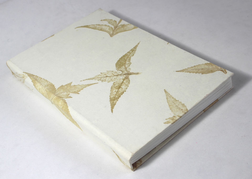 Cuaderno Personalizado de Tapa Dura en Color Crema con Impresiones de Hojas Frescas, Excelente Cuaderno Multiusos
