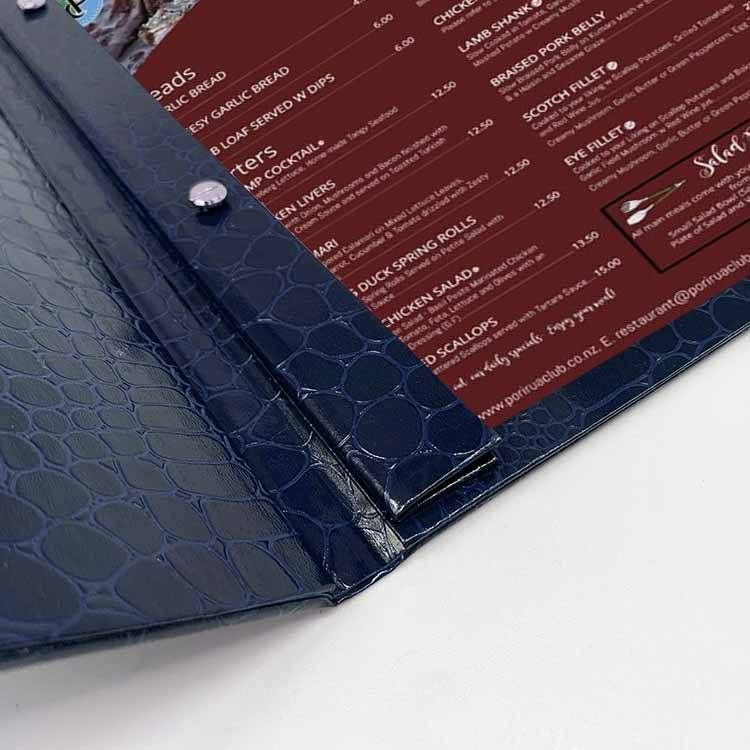 Carpeta de Menú Personalizada de Piel de Cocodrilo para Restaurante con Encuadernación Interna con Tornillos, Carpeta de Menú A4 para Restaurantes