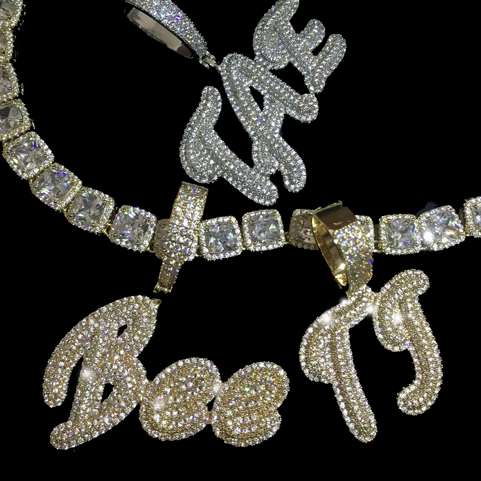 Colgante de diamantes con nombre personalizado IGI, colgantes y dijes cultivados en laboratorio con certificado, estilo chapado en oro de 14K para fiestas
