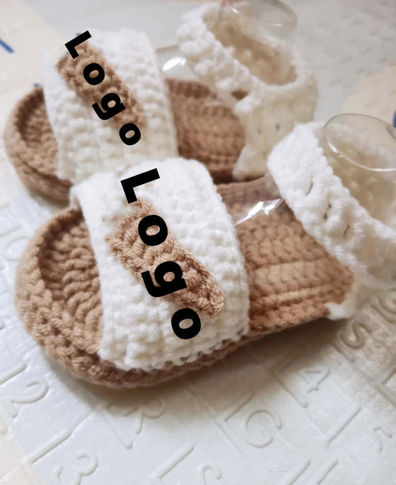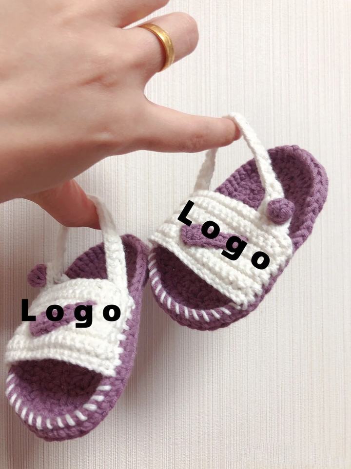 Zapatos bonitos personalizados para bebé, sandalias coreanas con logotipo personalizado, zapatos de ganchillo a mano, colores caramelo para niños