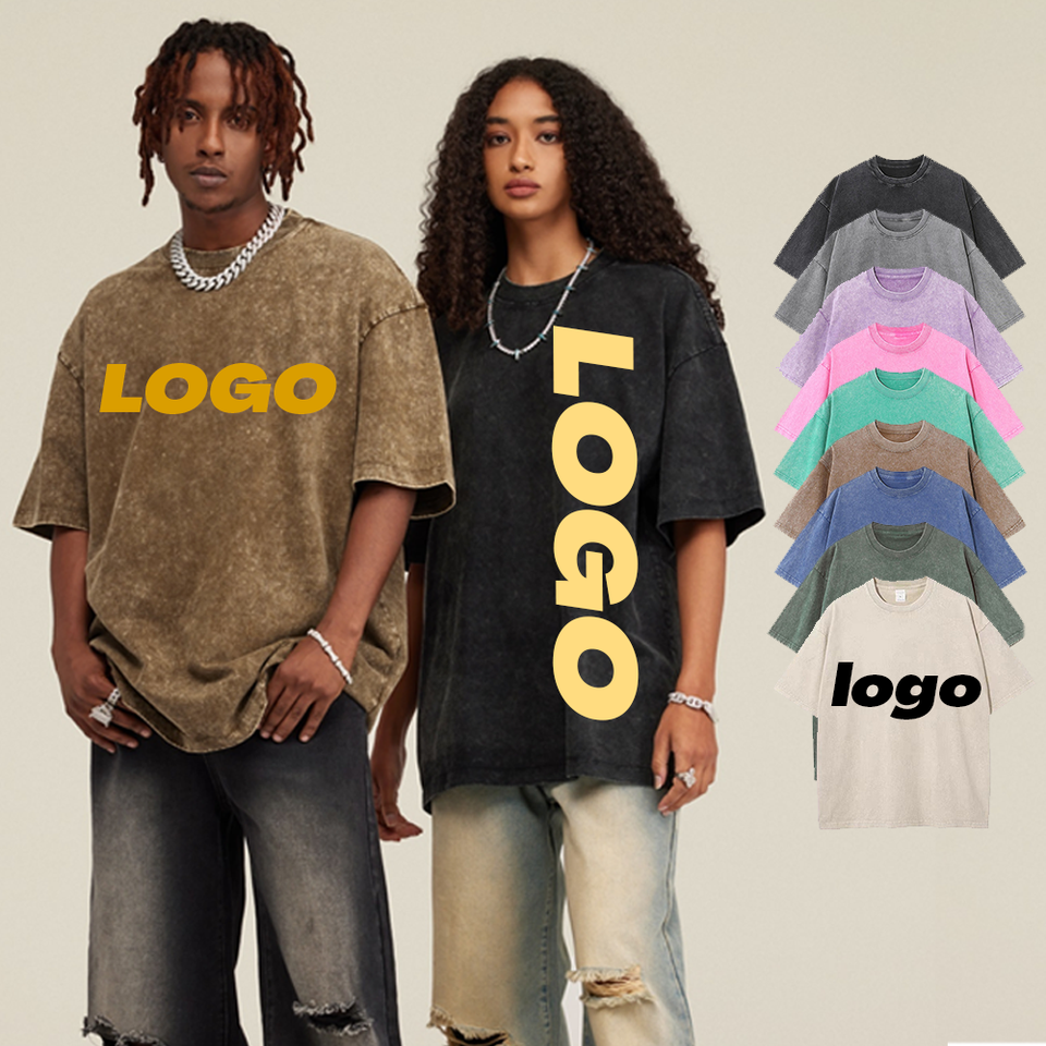 Camisetas Personalizadas con Logotipo Impreso en DTG, Lavadas con Ácido, Estilo Vintage, Streetwear, de Algodón, Corte Holgado y Recortado
