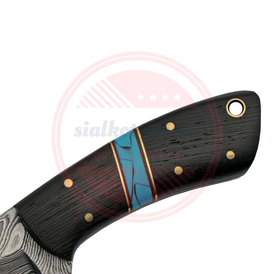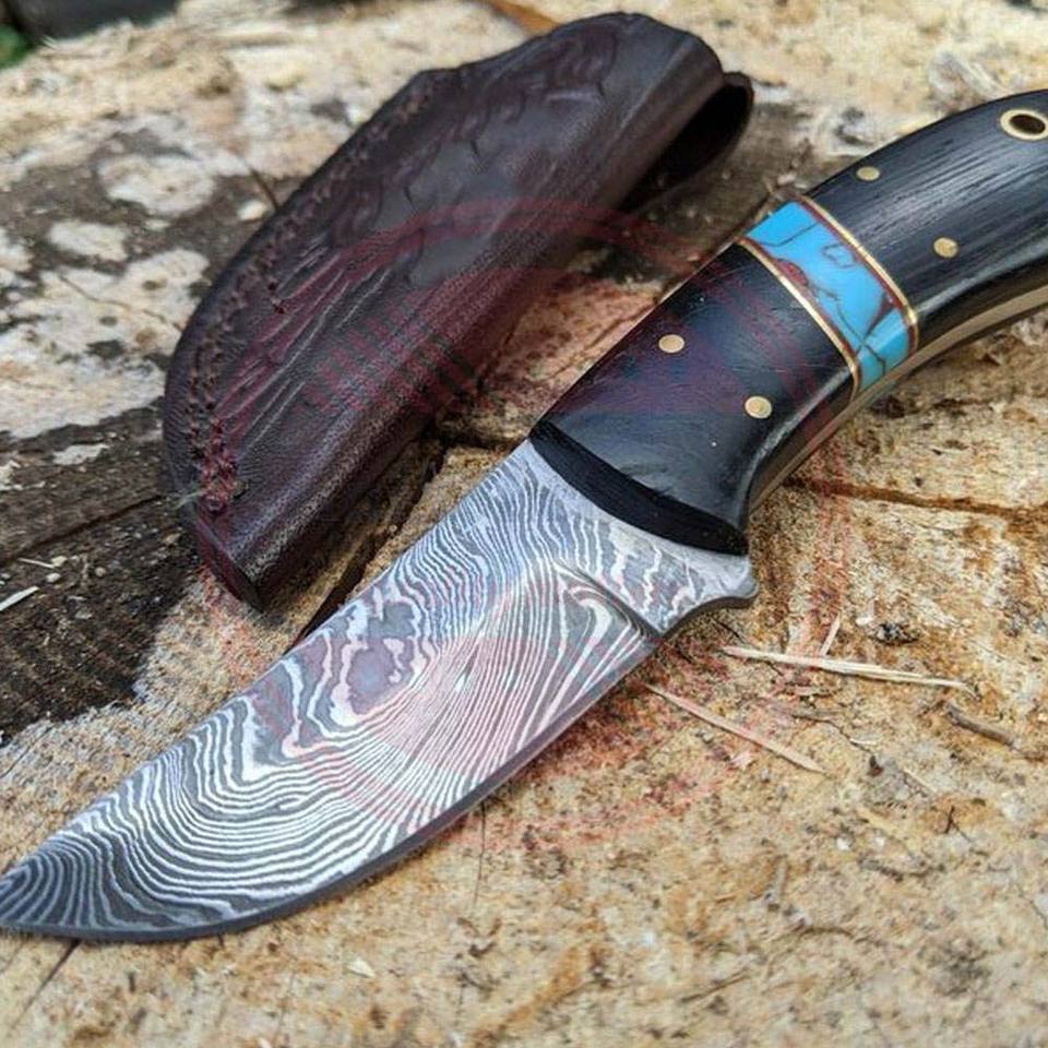 Cuchillos personalizados de acero de Damasco para caza, cuchillos para acampar, mango fijo, cuchillo para exteriores con Funda de cuero