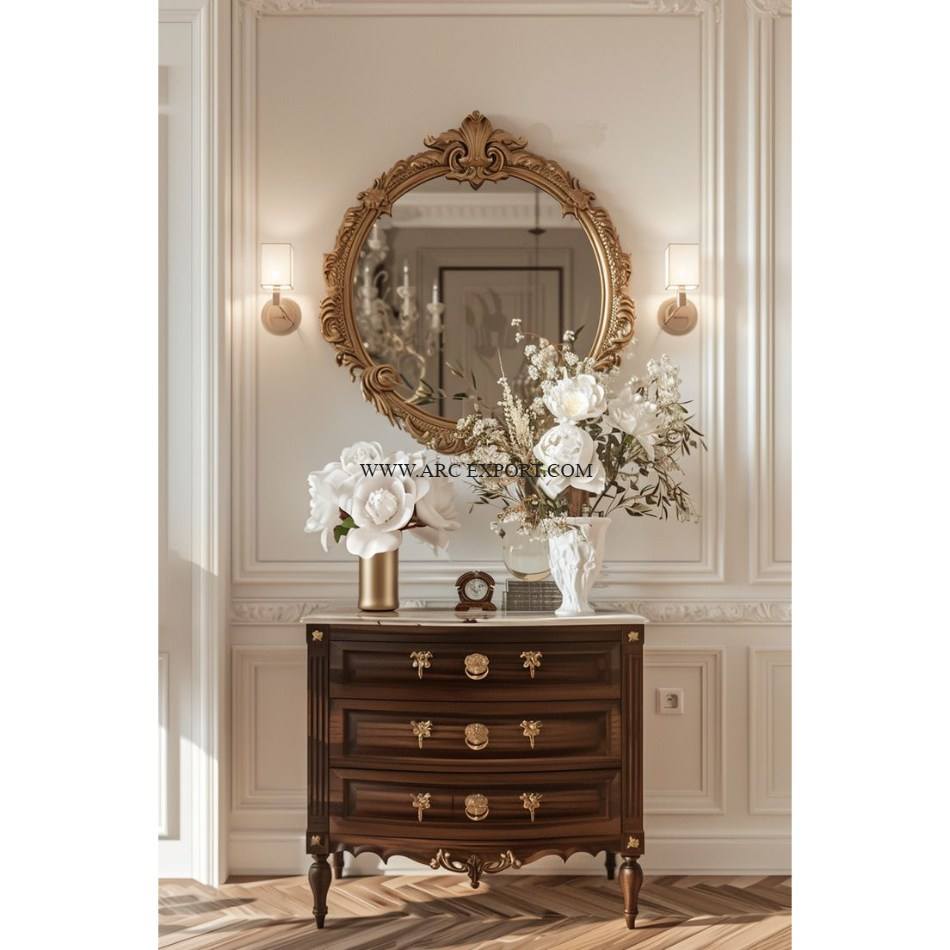 Espejo de Pared Decorativo Personalizado de Color Marrón Clásico, Espejo de Pared de Diseño Vintage para Decoración de Entrada