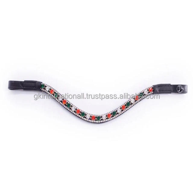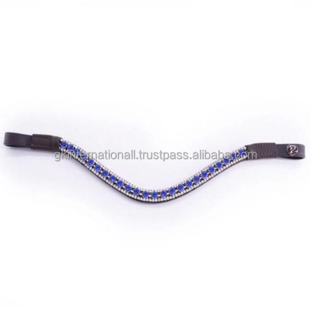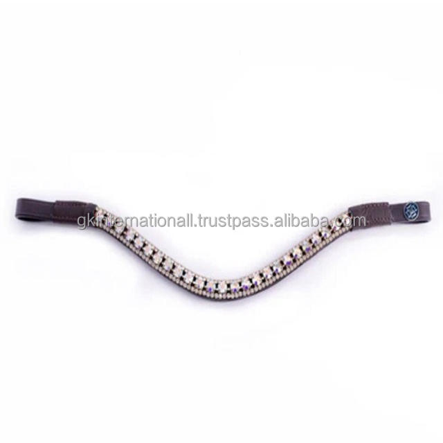 Diadema para caballo de cuero negro inglés con forma de onda profunda personalizada, diseñada con tres filas de cristales brillantes mega bling.