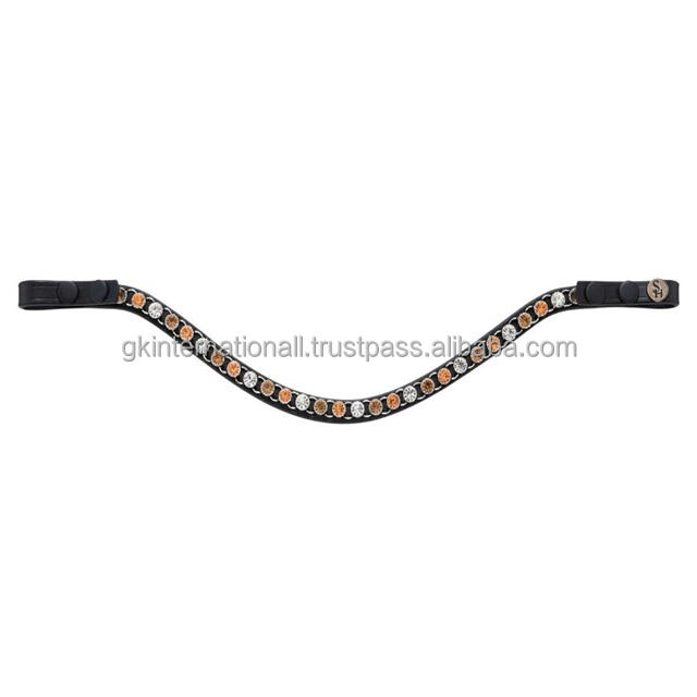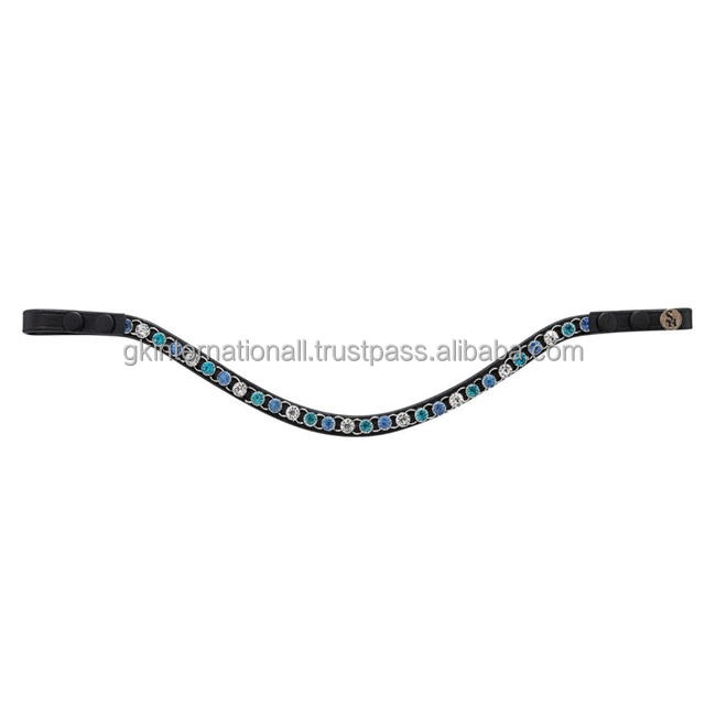 Cristales multicolores personalizados con forma de onda profunda, banda decorativa para la frente de caballo de cuero genuino en mazorca completa sobre tamaños