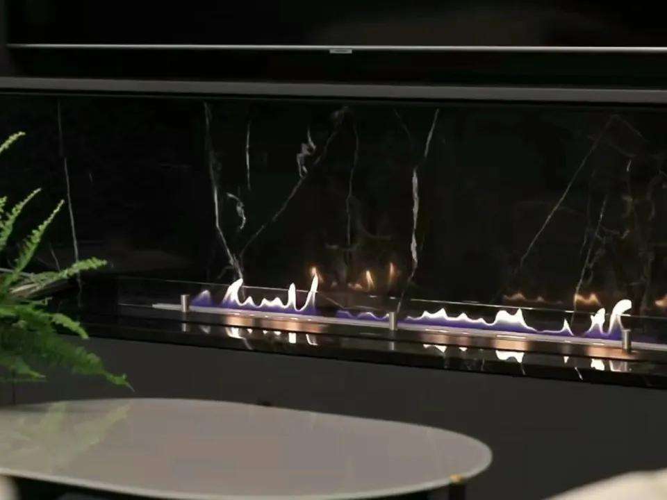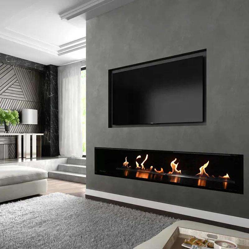 Chimenea de Bioetanol Inteligente de Acero Moderna y Lineal de Lujo Personalizada con Control Remoto para Calentar el Dormitorio