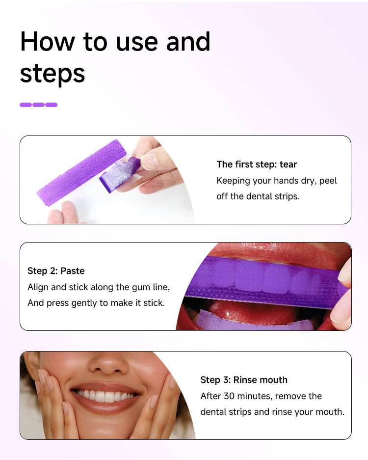 Parches Blanqueadores Dentales Personalizados, Violeta, PAP V34, Tiras Blanqueadoras de Dientes Púrpuras