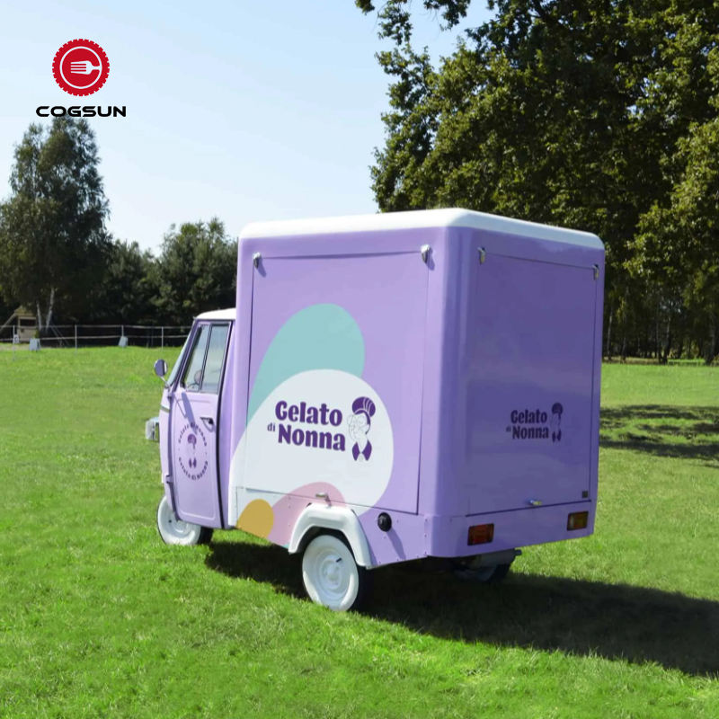 Diseño personalizado Ape Piaggio triciclo camión de comida de acero inoxidable para la venta flores en la azotea restaurante móvil productos de pavo