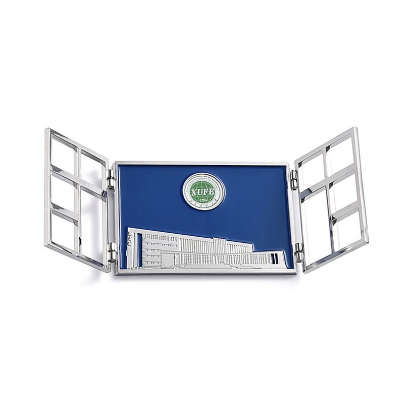 Imán de Refrigerador de Metal Plateado Plegable con Diseño Personalizado de Patrón de Construcción Pintado