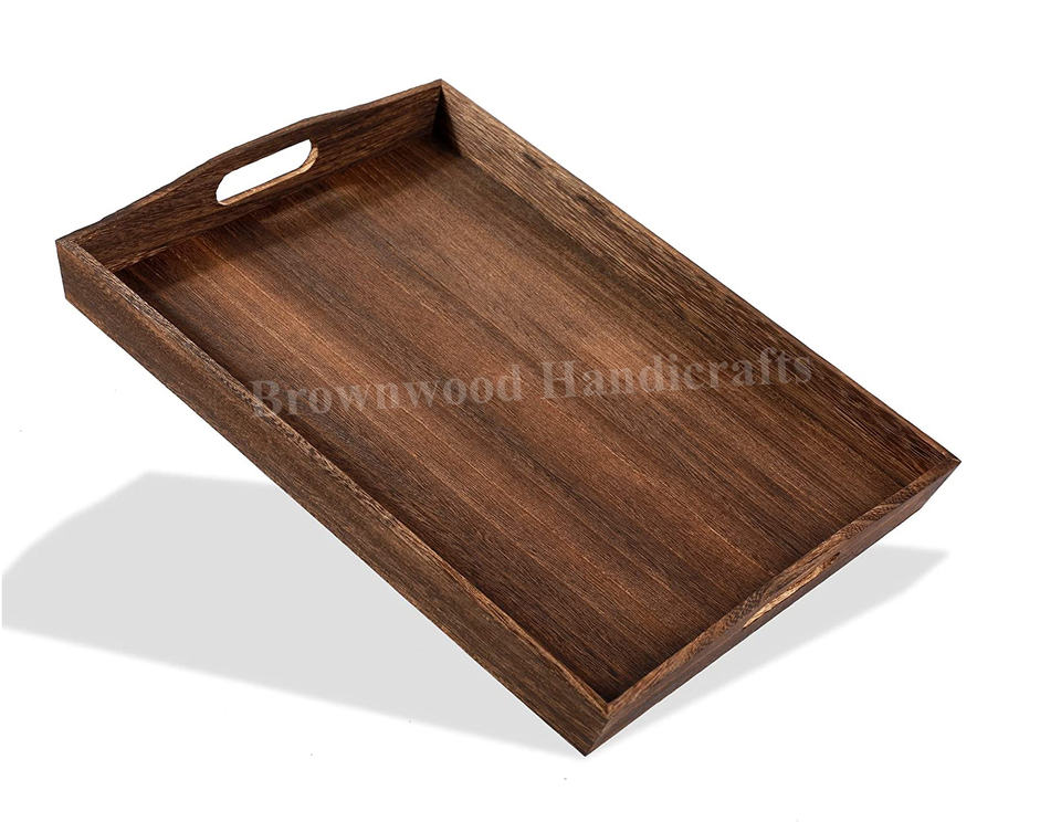 Wooden Rectangular Tray with HandlesProduct Name
