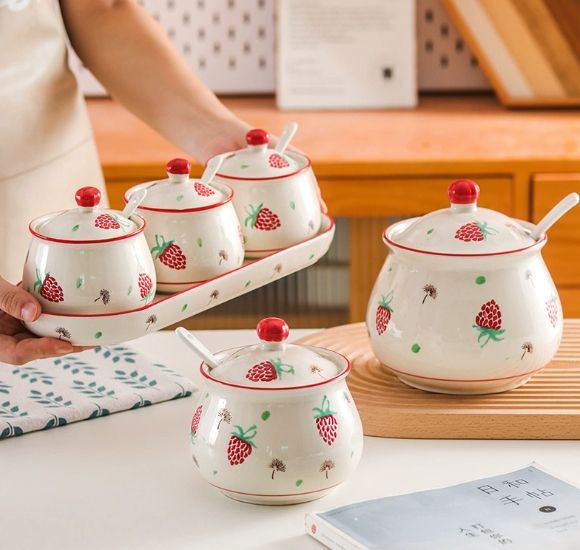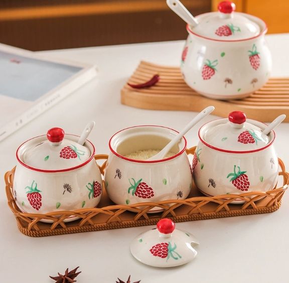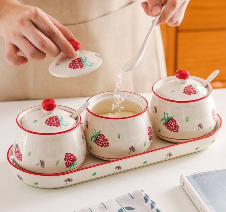 Diseño personalizado de diferentes tamaños de cerámica azucarero aceite pimienta salero con cuchara