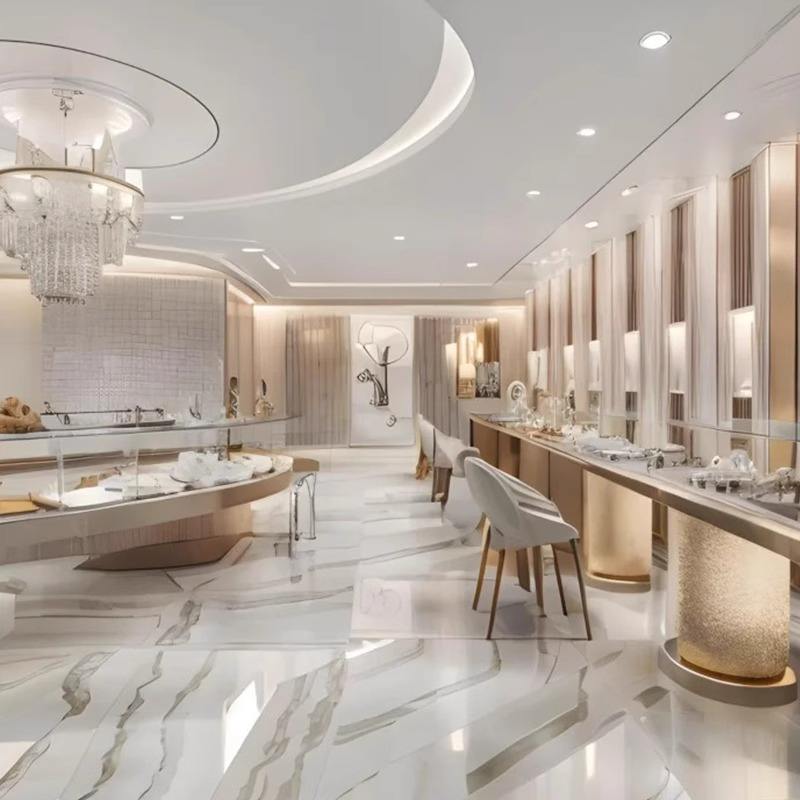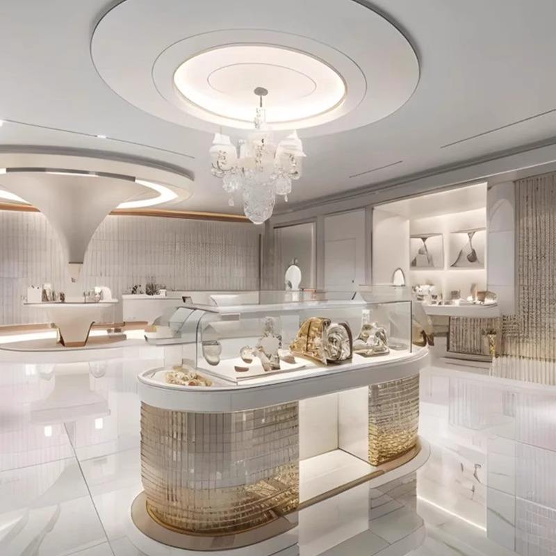Gabinete de exhibición de diseño personalizado para joyerías LED Showcase Glass Island Shelve Counter para Jade Silver Jewelry para Mall