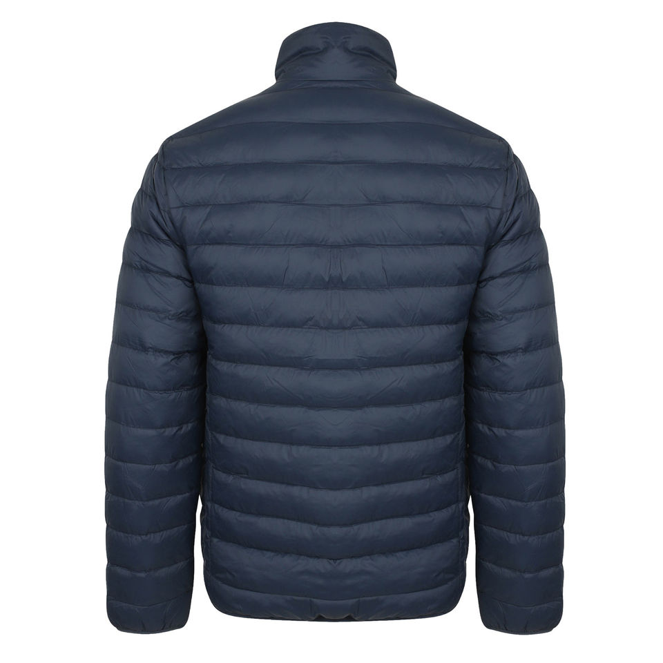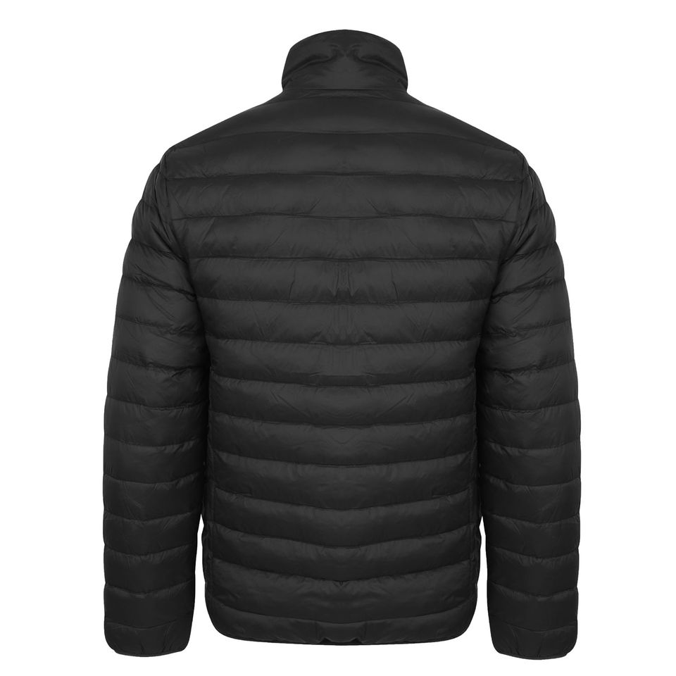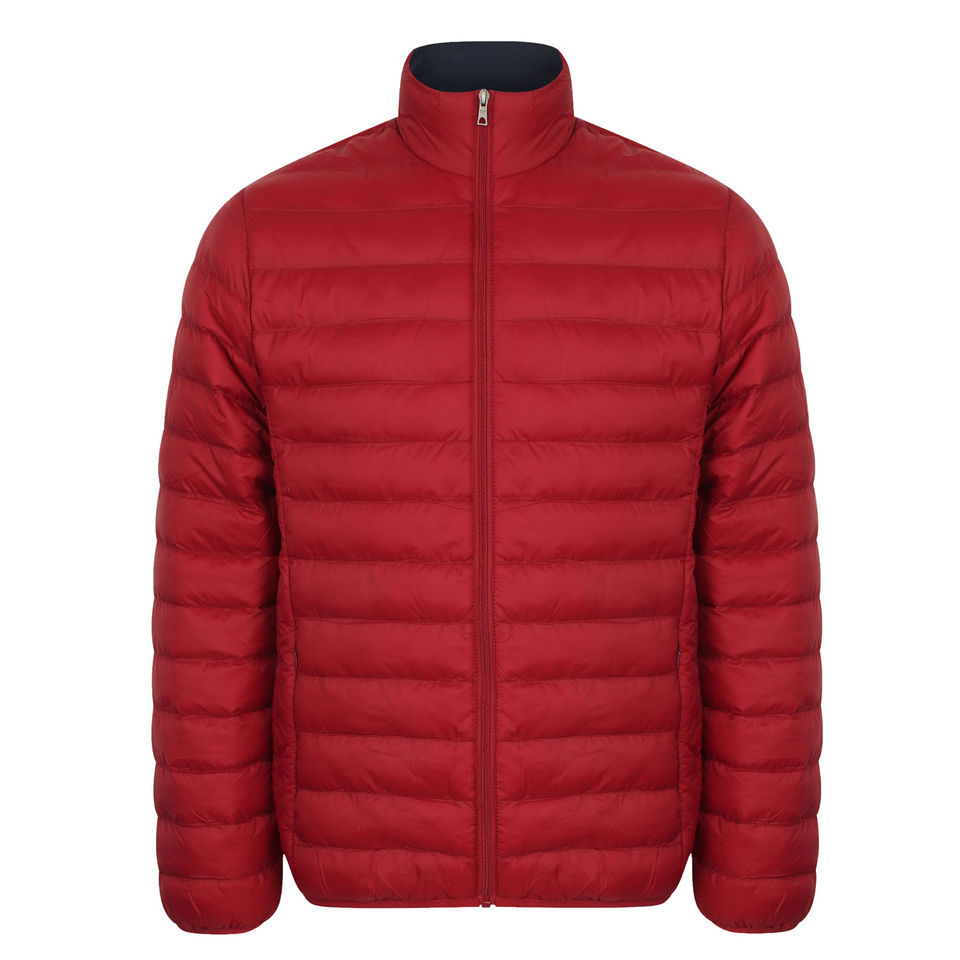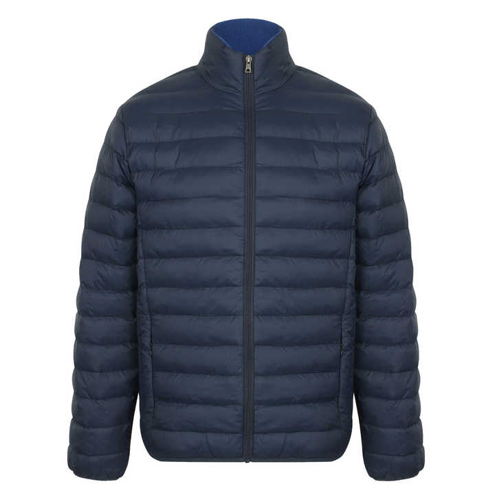 Chaquetas acolchadas de diseño personalizado para hombre, ropa de invierno con cuello levantado, capucha, botón, logotipo, patrón sólido tejido en tela de nailon