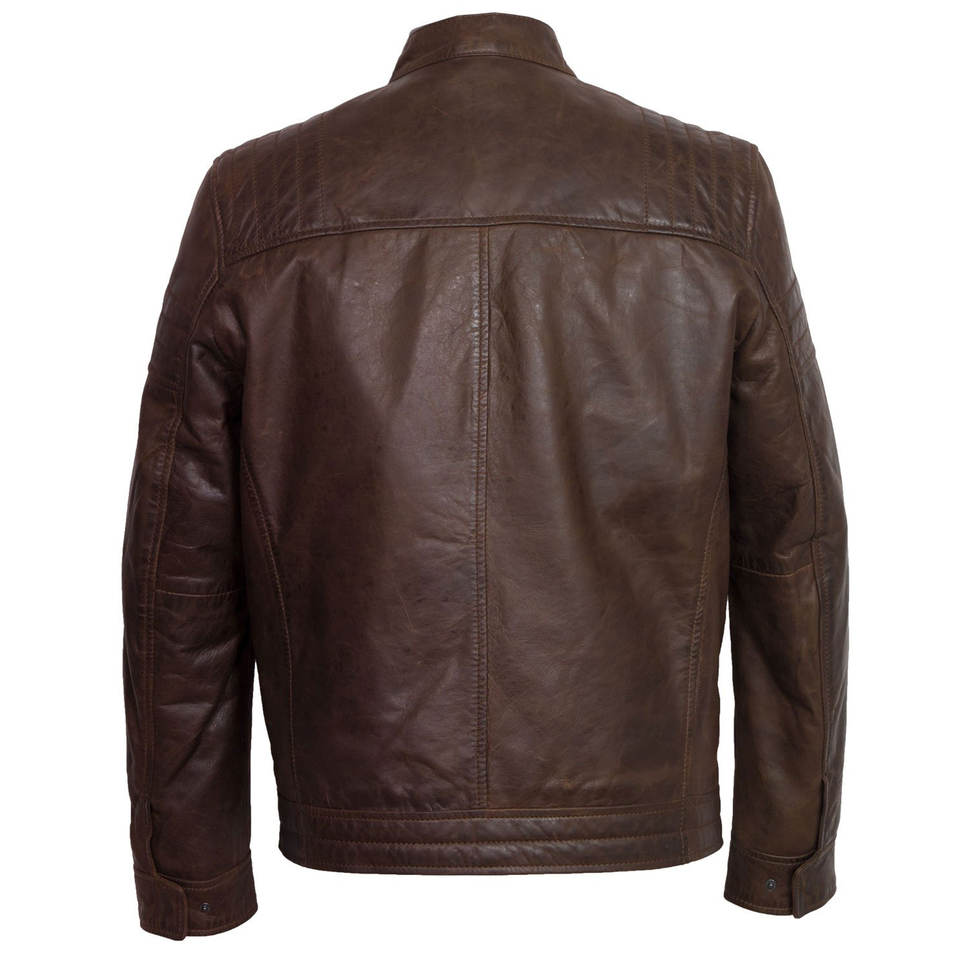 Chaqueta de motorista de cuero genuino de diseño personalizado chaquetas de motocicleta de piel de cordero de moda marrón Vintage para hombres