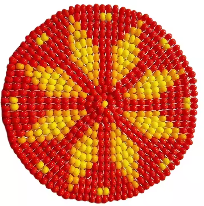 Posavasos con cuentas absorbentes redondas hechas a mano de alta calidad con diseño personalizado, 4 semillas de calor bordadas para bebidas