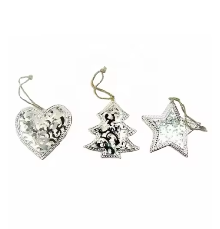Adornos colgantes de Navidad DE TRABAJO martillado y acabado de plata hecho a mano en forma de corazón de diseño personalizado superventas