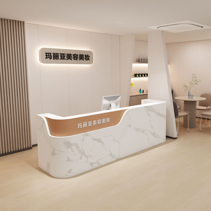 Mostrador de Información de Diseño Personalizado, Mostrador de Recepción Blanco de Forma Estándar para Salón