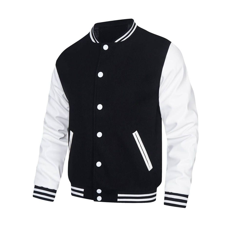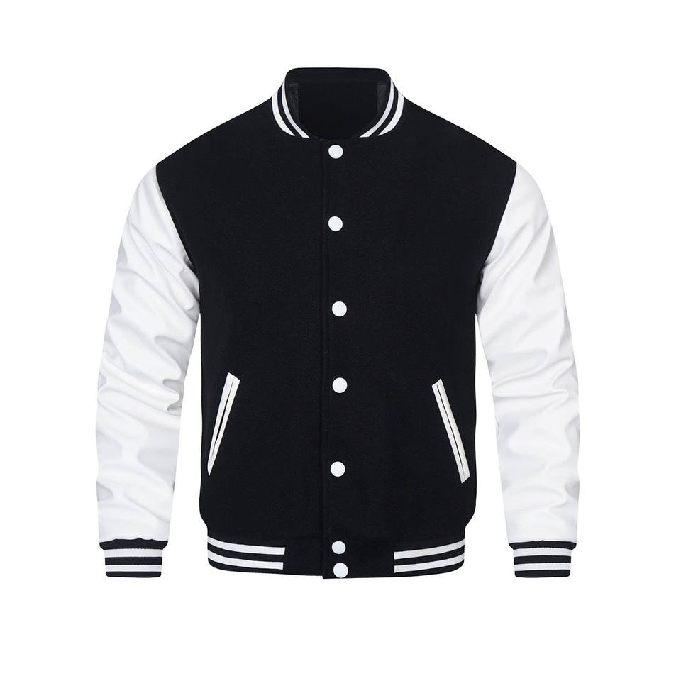 Chaqueta con logotipo de diseño personalizado para hombre, chaqueta de béisbol bordada con mangas de cuero y lana de alta calidad, ropa de calle de talla grande