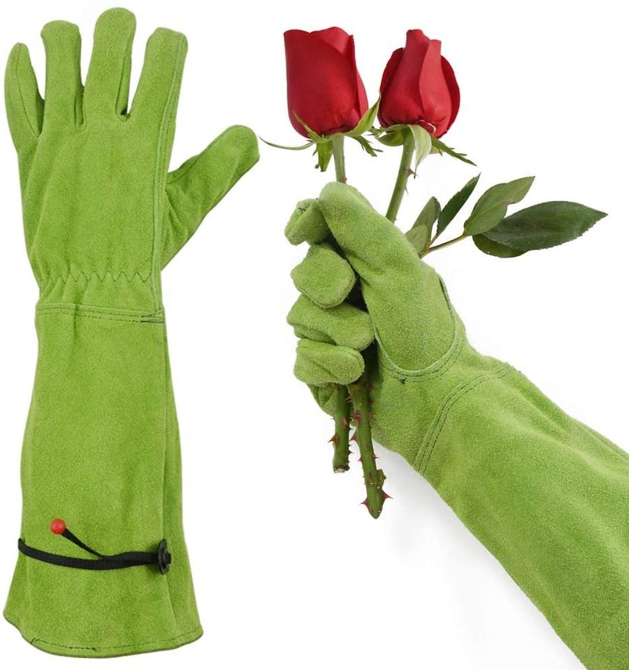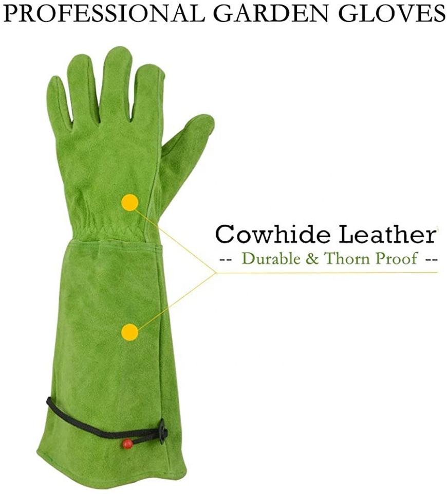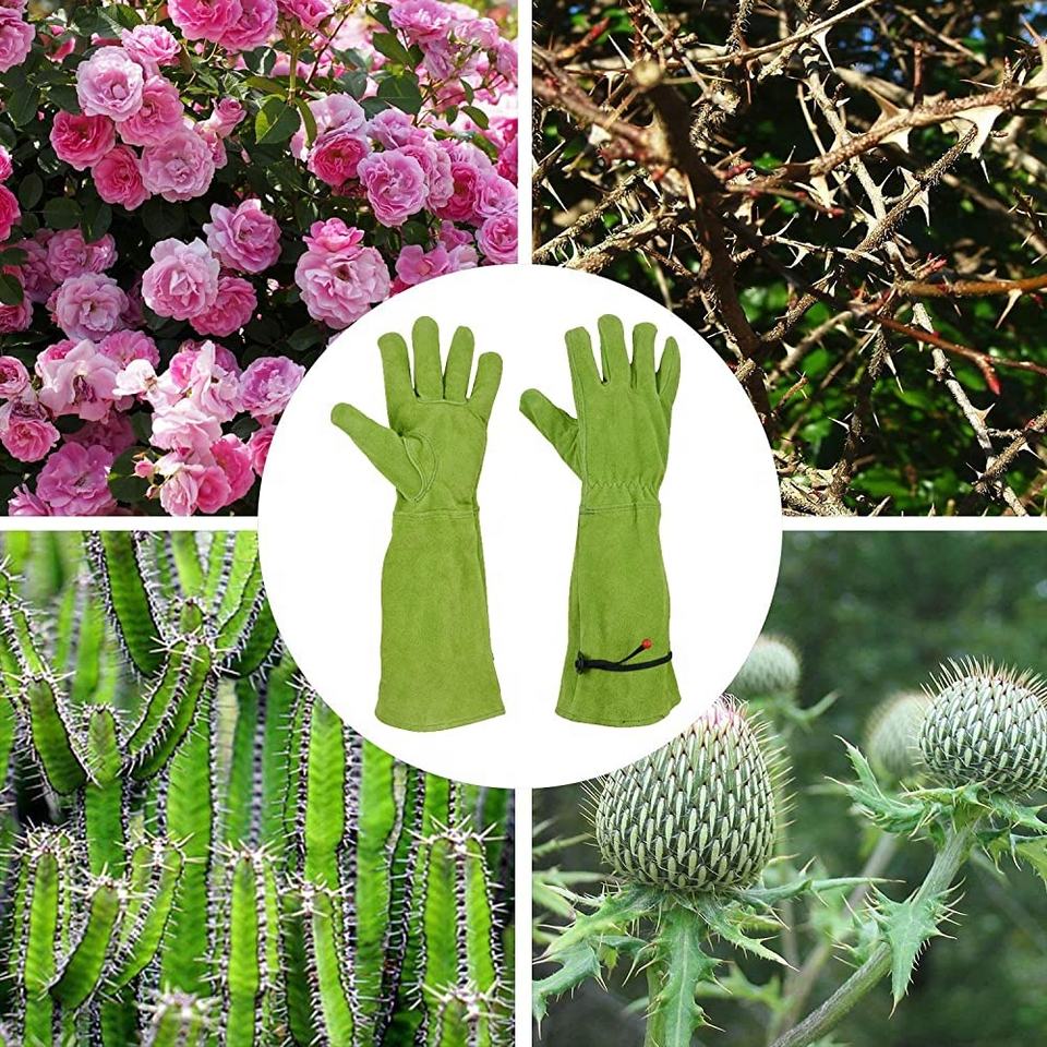 Guantes de trabajo de manga larga con diseño personalizado para jardín, de piel de oveja verde, a prueba de agua, para jardinería
