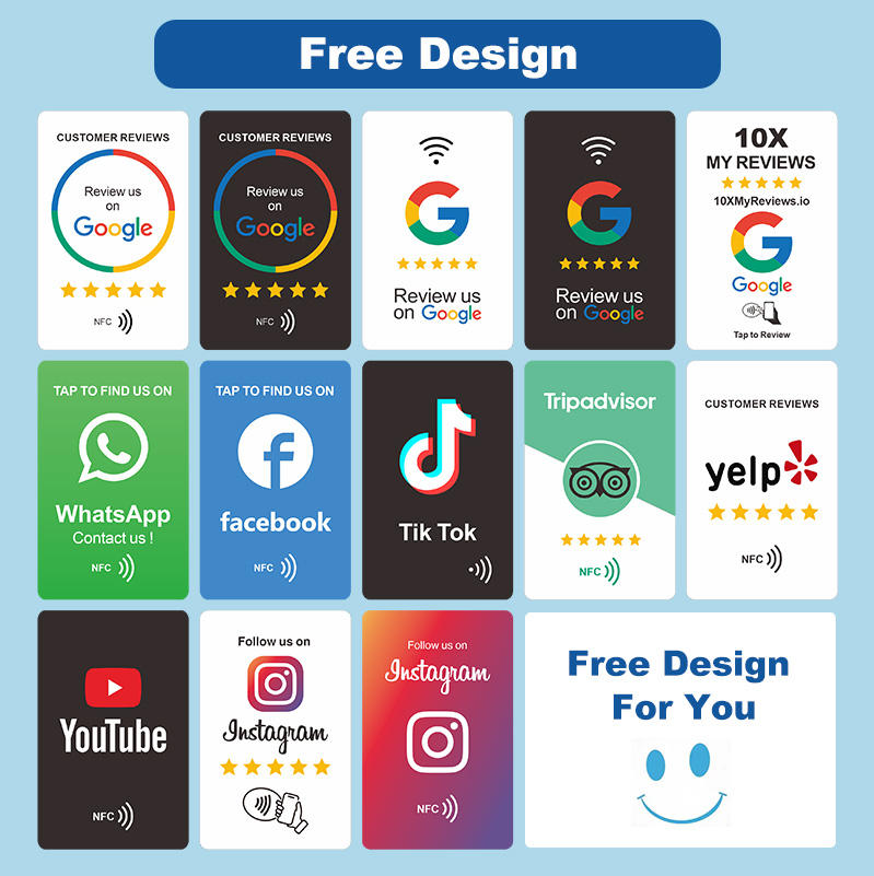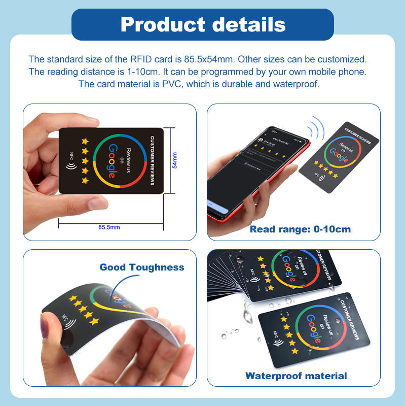 Tarjeta de Revisión de Google con Diseño Personalizado de PVC RFID NFC, Tarjeta de Visita RFID de 13.56Mhz para Facebook, Whatsapp e Instagram