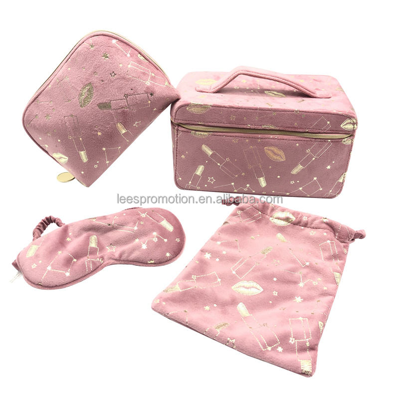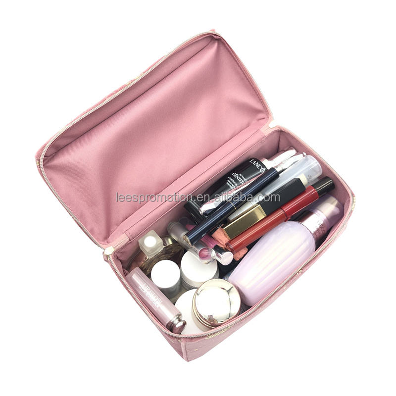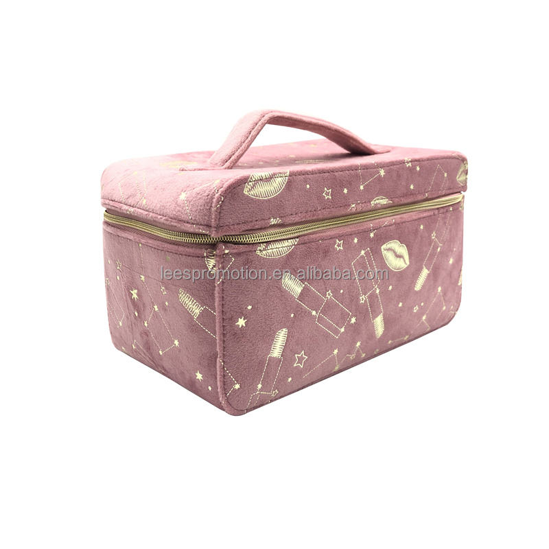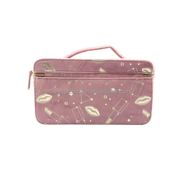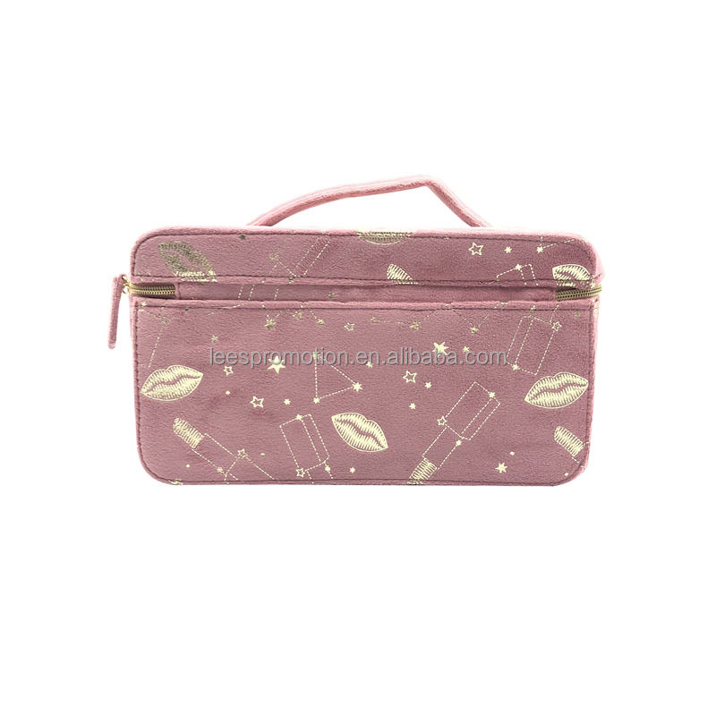 Bolsa de maquillaje de viaje de terciopelo portátil de diseño personalizado con estuche de maquillaje esponjoso con asa