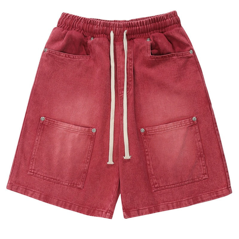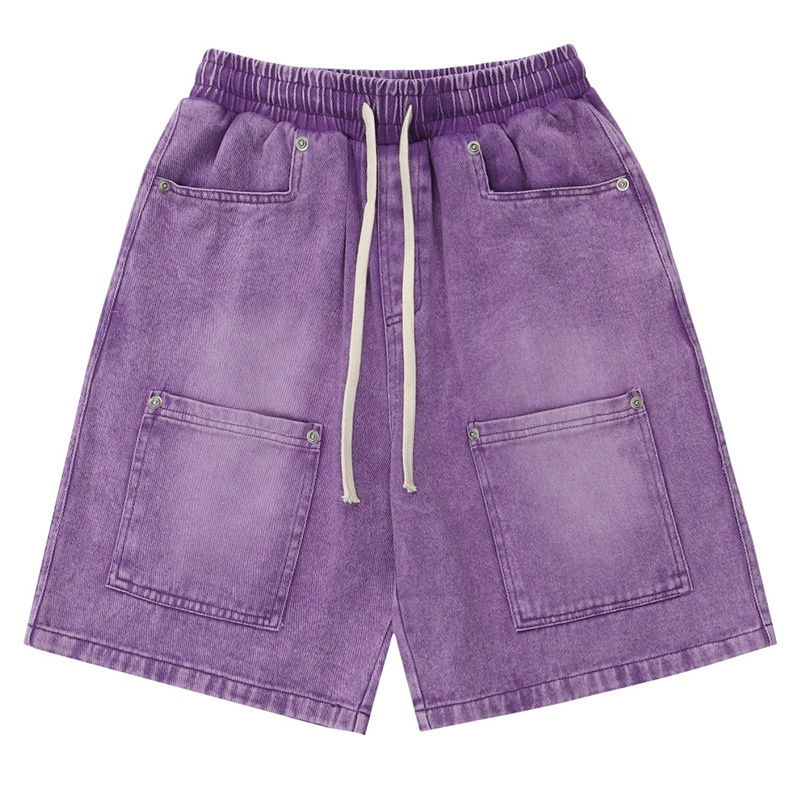 Pantalones vaqueros puros de diseño personalizado para hombre, ropa de calle lavada, pantalones cortos vaqueros para hombre con bordado, ropa de verano al por mayor