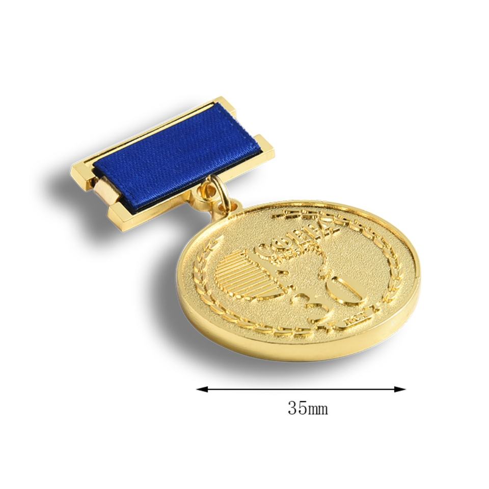 Medalla de Metal Dorada con Relieve y Amuleto, Diseño Personalizado para Recuerdo