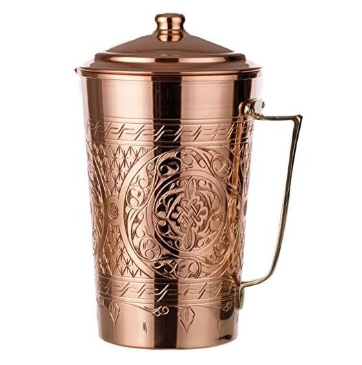 Jarra de agua de diseño personalizado con asa lateral Jarra de cobre puro de alta calidad con tapa hecha a mano Disponible a precio con descuento