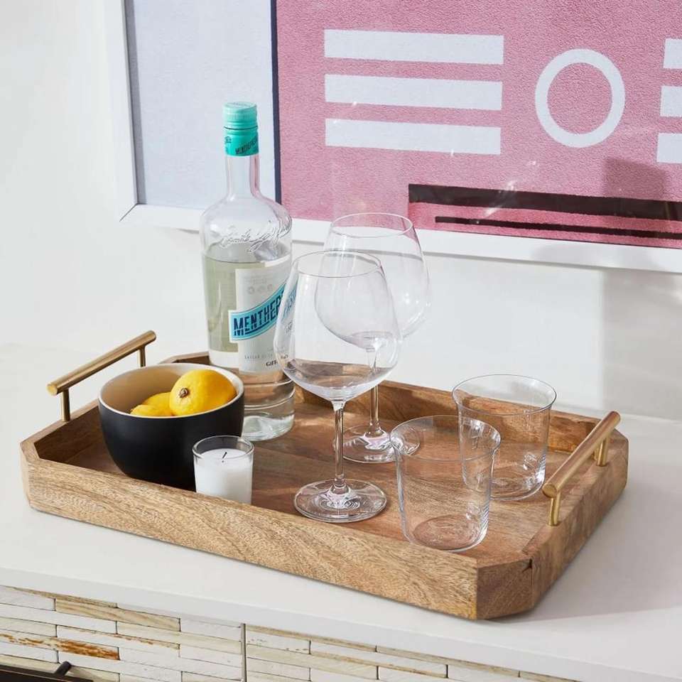 Bandeja de servicio de madera con diseño personalizado, conjunto de bandejas decorativas grandes de madera, venta al por mayor