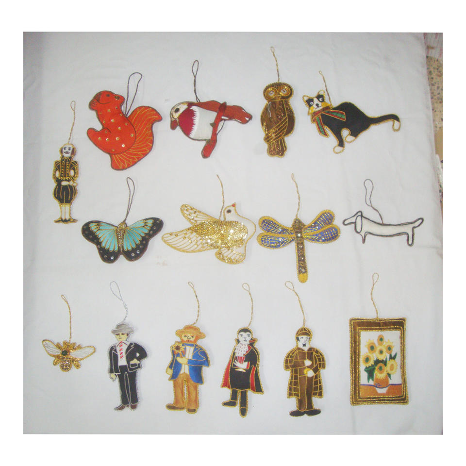 Hermosos diseños personalizados, adornos de varias formas, bordados con cuentas y trabajo Zari para decoración colgante de árboles de Navidad.