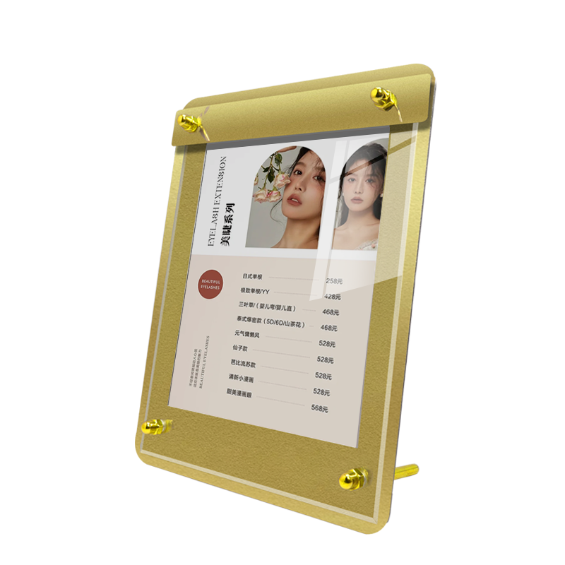 Soporte de exhibición de acero inoxidable de escritorio personalizado Tablero de publicidad de metal Tablero de carteles de exhibición de menú