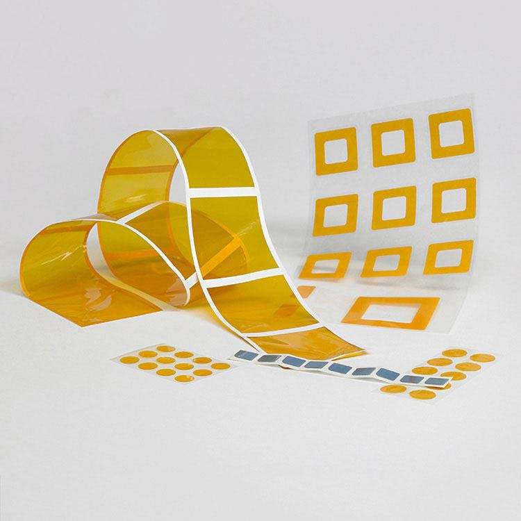Cinta de Poliimida con Recubrimiento Dorado, Troquelada a Medida, Antiestática y Resistente a Altas Temperaturas