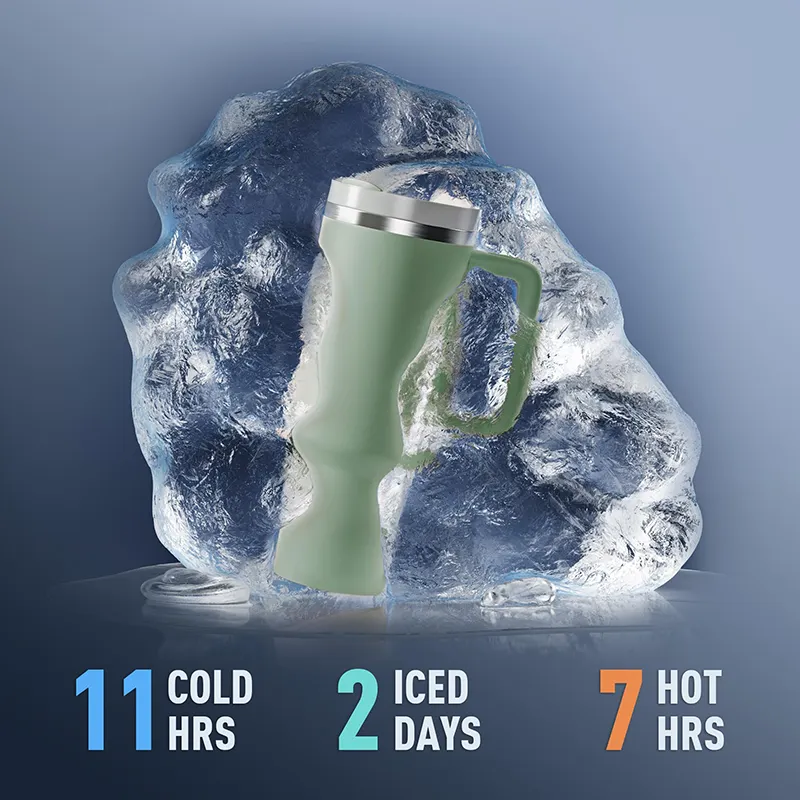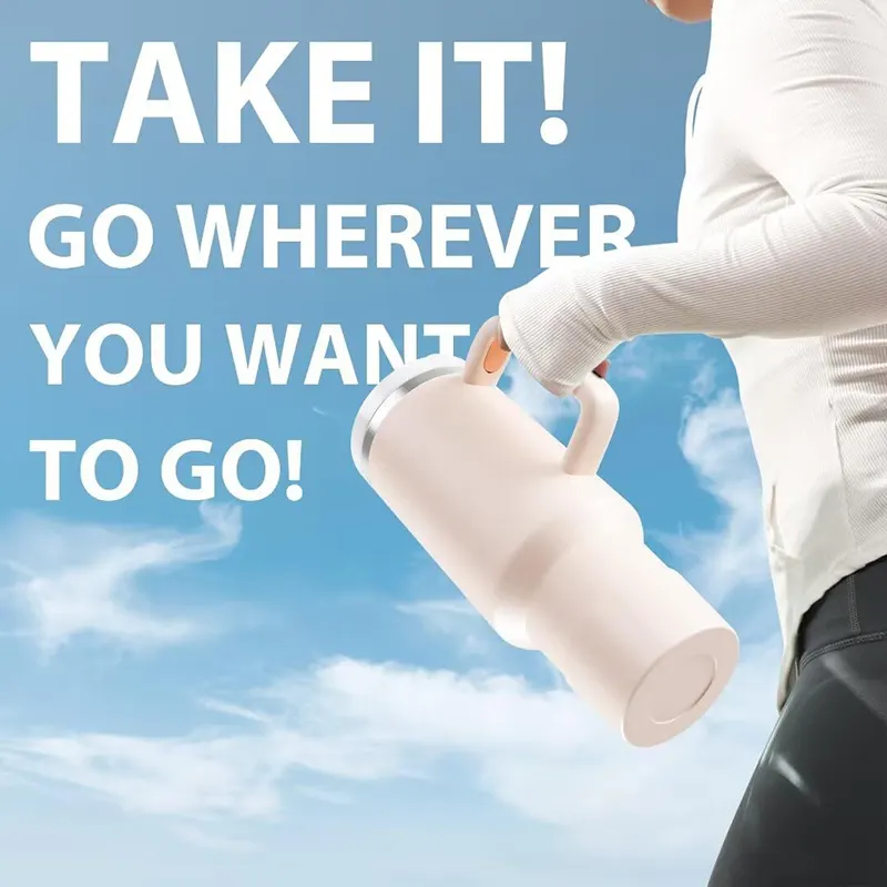 Vaso Personalizado Desechable Ecológico de Acero Inoxidable 18/8 de 40 Oz con Asa, Tapa con Popote y Vacío, Logotipo Personalizado para Uso Promocional