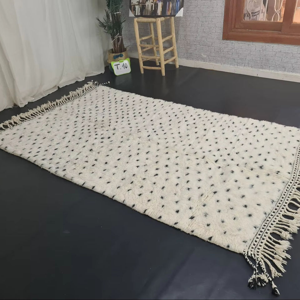 Alfombra blanca y negra punteada personalizada, Tapis bereber, marroquí Beni Ourain, alfombra personalizada, auténtica alfombra anudada a mano de lana de oveja