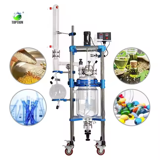 Reactor de vidrio forrado de doble capa personalizado Capacidad de 10L-50L con chasis de acero inoxidable Nuevo Reactor de tanque digital