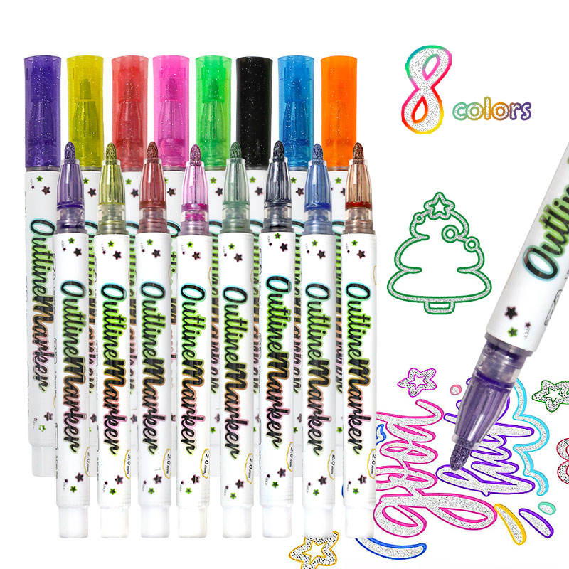 Marcadores de Contorno Doble Personalizados, Marcadores de Arte Metálicos Permanentes de Colores para Niños, para Dibujar Grafitis