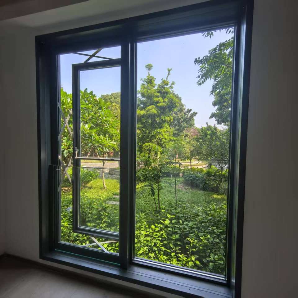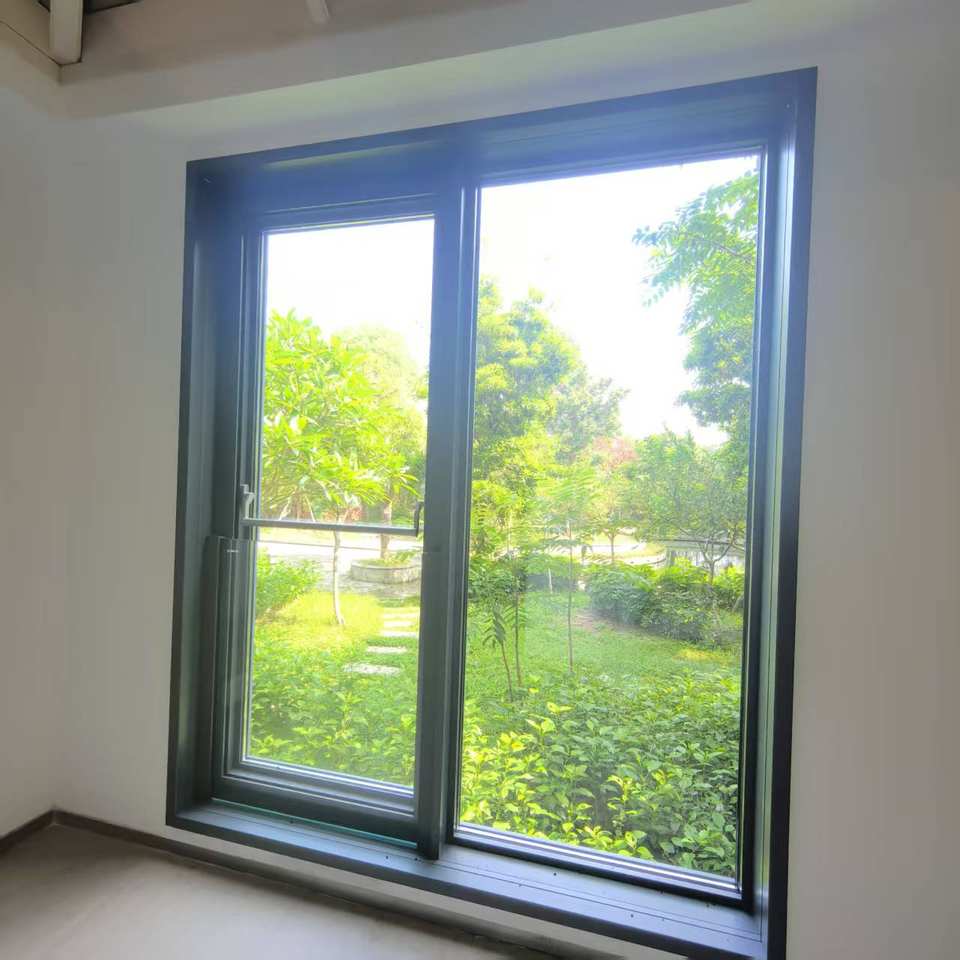 Puerta corredera de vidrio templado doble personalizada, marco de aleación de aluminio, diseño de empuje y tracción, ventanas para escalera exterior disponible para