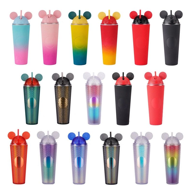 Vaso de Plástico de Doble Capa Personalizado con Pajita, Gran Capacidad, Creativo, Portátil, con Tapa de Orejas de Gato, Vaso Durian con Tapas y Pajitas