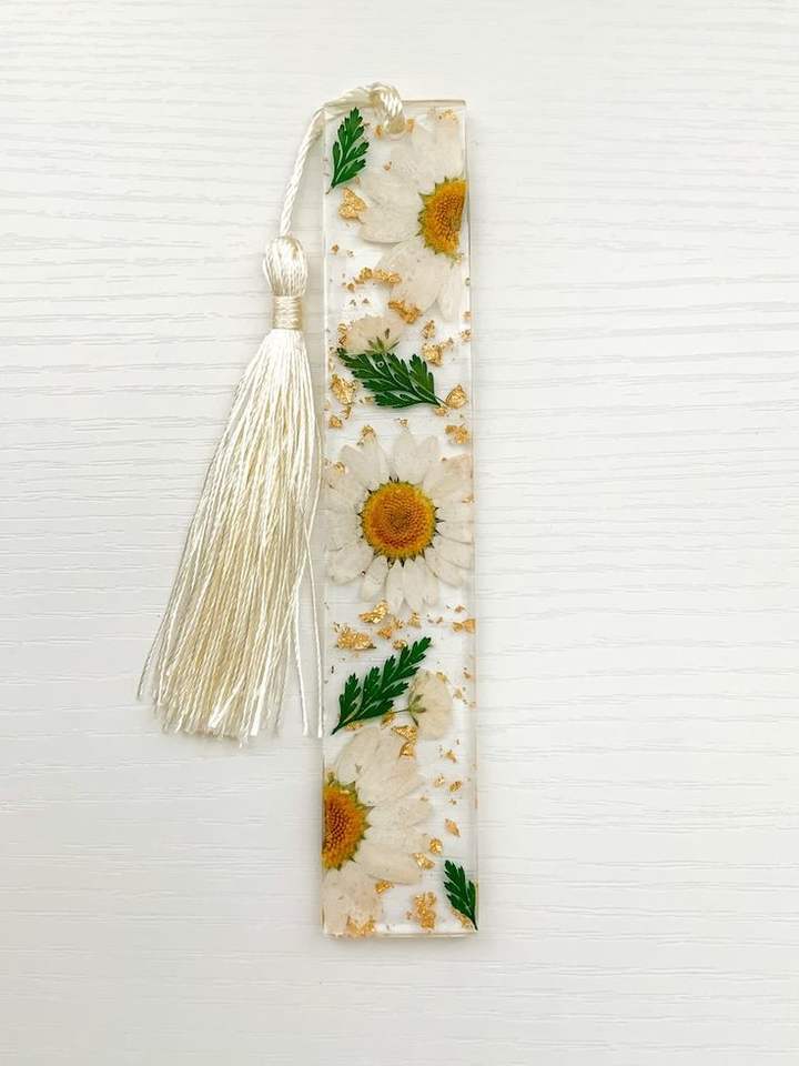 Marcapáginas de Resina con Flores Secas Personalizadas, Bonito Sujeta Libros con Diseño Art Deco, Forma Redonda, Marcapáginas Decorativos para Promociones