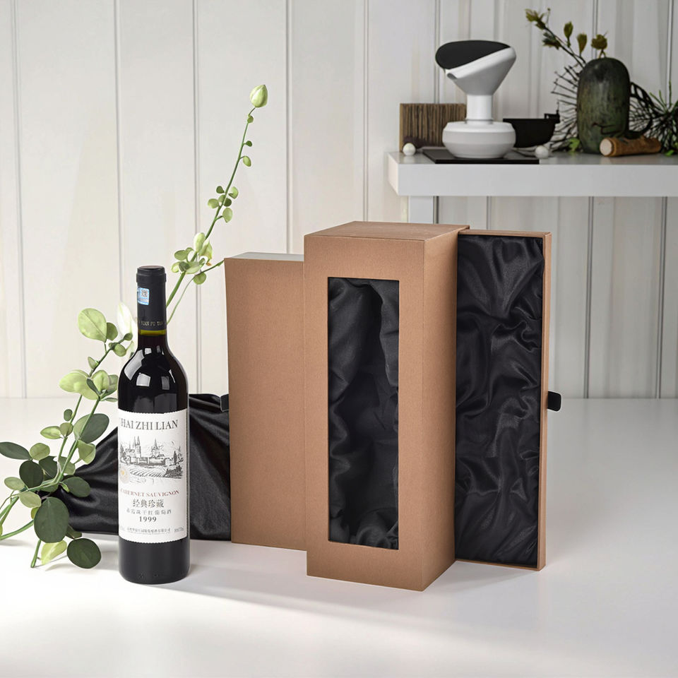 Caja de regalo de vino de Chocolate con cajón de papel Kraft Staine rectangular ecológica personalizada