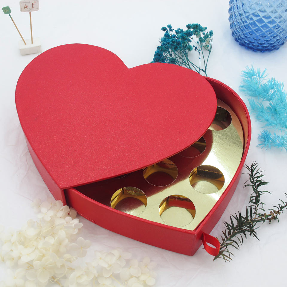 Caja de regalo de chocolate en forma de corazón de color rojo materiales reciclados ecológicos personalizados